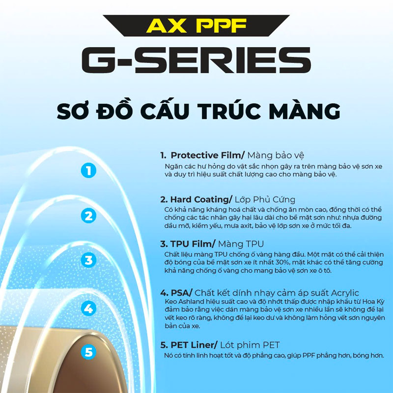 2. CẤU TRÚC CHẤT LƯỢNG CAO CỦA PHIM DÁN PPF Ô TÔ G SERIES CỦA HÃNG AX FILM