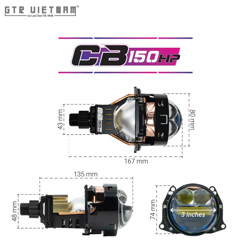 - Tản nhiệt Pha: 1+1 chip LED Osram được thiết kế riêng khối Aluminum để tản nhiệt. Kết hợp cùng hai ống đồng kéo dài đến cánh quạt để dẫn đến hệ thống quạt của đèn. Chính vì thế, dù cho công suất hoạt động Pha cao nhưng CB150 HP vẫn có thể duy trì sự ổn định.